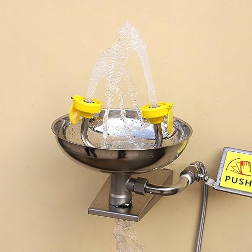 Stazione per il Lavaggio degli Occhi a Doppio Ugello Lavello per Lavaocchi di Emergenza con Montaggio a Parete in Acciaio Inossidabile 304 con Segnaletica di Sicurezza per Vari