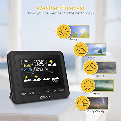 Stazione meteorologica a cinque giorni DIGOO, DG-TH 8805 Termometro igrometro interno/esterno con previsioni meteo sveglia