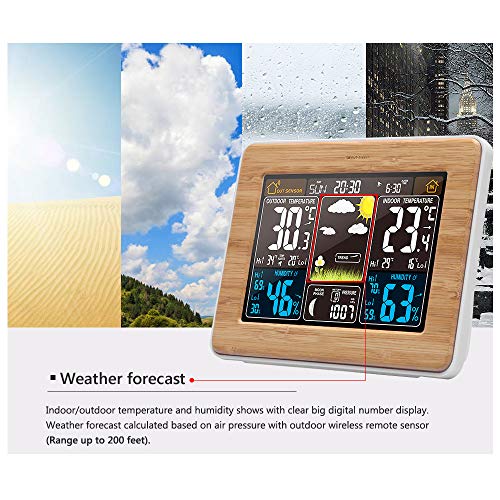 ❤️【TERMOMETRO DA INTERNO ED ESTERNO】: la Stazione meteorologica è dotata di un sensore remoto wireless esterno (portata fino a 60 m / 100 piedi), che raccoglierà i dati all'aperto e trasferirà i dati alla stazione meteorologica. E ci sono sette icone del colore delle previsioni del tempo (soleggiato, nuvoloso, cielo nuvoloso, pioggia leggera, pioggia pesante, neve leggera, neve pesante), un giornalista di tendenze meteorologiche.