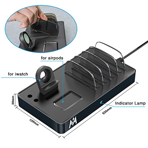 KKM Stazione di ricarica per più dispositivi, 40 W Fast 7 in 1, stazione di ricarica multi USB, compatibile con 14/13, iPad/cellulare/tablet/AirPods/iWatch/Apple Pencil (3 cavi corti inclusi)