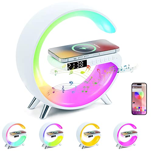 Stazione di ricarica per lampada RGB, lampada per altoparlante Bluetooth con caricabatterie wireless, luce ambientale che cambia colore RGB, luce notturna dimmerabile, lampada touch orologio sveglia