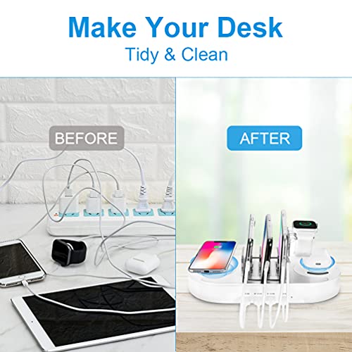 Stazione di ricarica USB - Il supporto di ricarica può tenere tutti i dispositivi allo stesso tempo, senza più fastidiosi cavi fastidiosi, in modo da avere una scrivania ordinata, risparmiando adattatori di ricarica aggiuntivi o presa di corrente. 6 tappetini antiscivolo per evitare scivolamenti