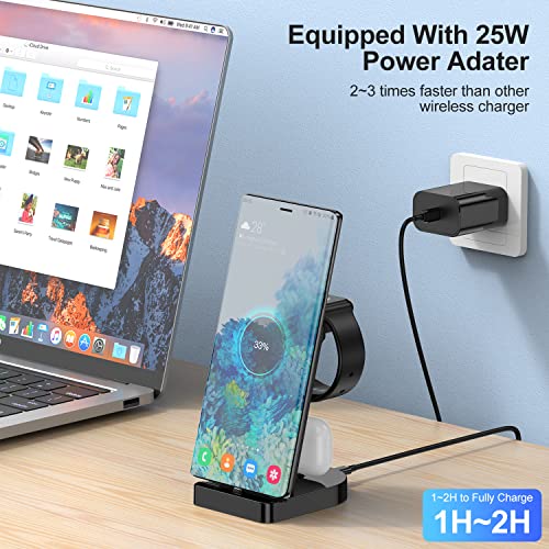 Stazione di ricarica Samsung 3 in 1, 25 W, 3 in 1, compatibile con Samsung Galaxy S23 S23+, S23 Ultra, S22, S22+, S22 Ultra, S21, S21+, S21 fe, S21 Ultra, S20+, S20 Ultra, S20 Ultra, S20, S10 S. 9 S8, A53/A52/A51, Note 20/10/9 e altri telefoni Android con porta di ricarica di tipo C;