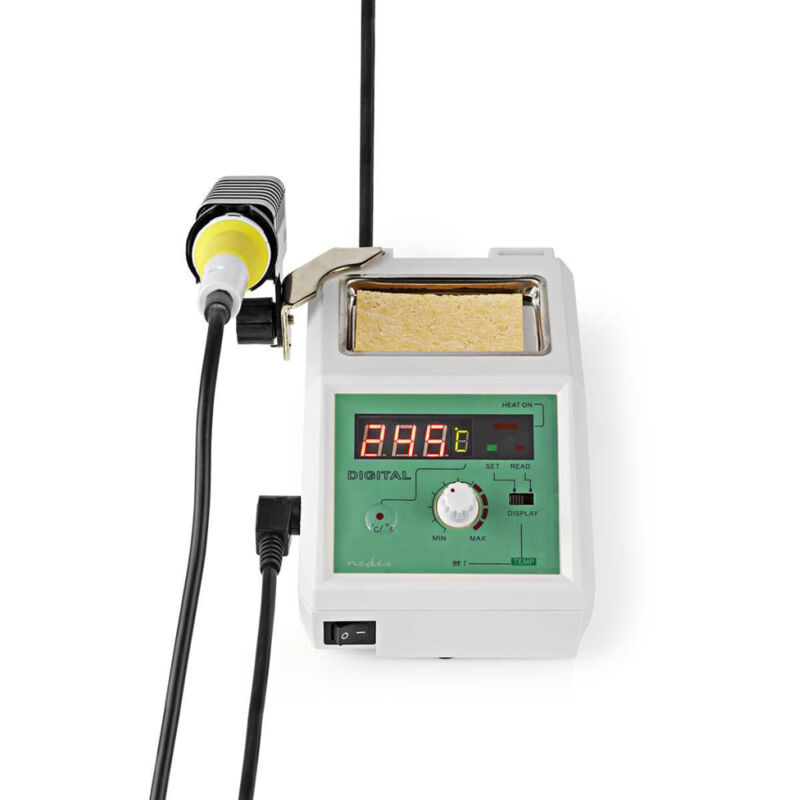 Imposta la temperatura della punta di questa stazione di saldatura da 160°C a 480°C. La temperatura viene mantenuta entro ± 8 °C rispetto alla temperatura impostata. La punta dell'unità è isolata dalla linea AC tramite un trasformatore. Per alimentare l'elemento riscaldante viene utilizzata la bassa tensione (24 V). Questa unità contiene un display LED digitale a 7 segmenti che indica con precisione la temperatura max. temperatura di saldatura: 480 °Cmin. temperatura di saldatura: 160 °CVoltaggio: 24 VPotenza: 48 W