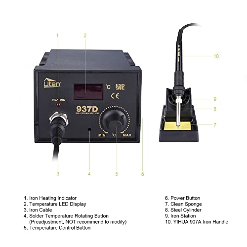 ✪ I prodotti includono: host 937D x1, maniglia del saldatore x1, base del saldatore x1, manuale x1