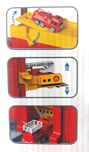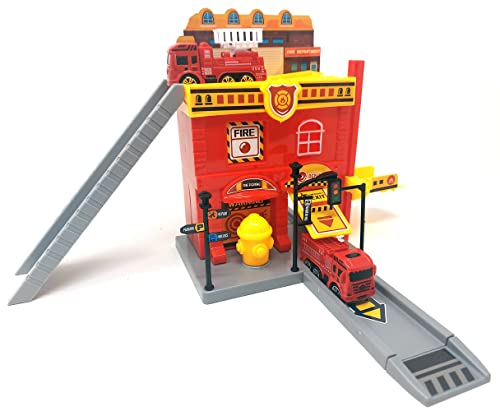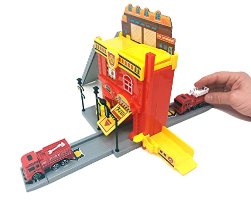 Set giocattolo per auto con stazione dei pompieri e 2 camion dei pompieri