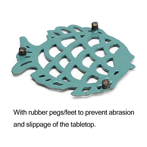 STCREE Ghisa Verde Pesce Sottopentola Pentole Calde Supporto Piatti Pad per Cucina & Tavolo da Pranzo 15x18.5cm con Piedini In Gomma Decorativo Vintage Design TQGJST35