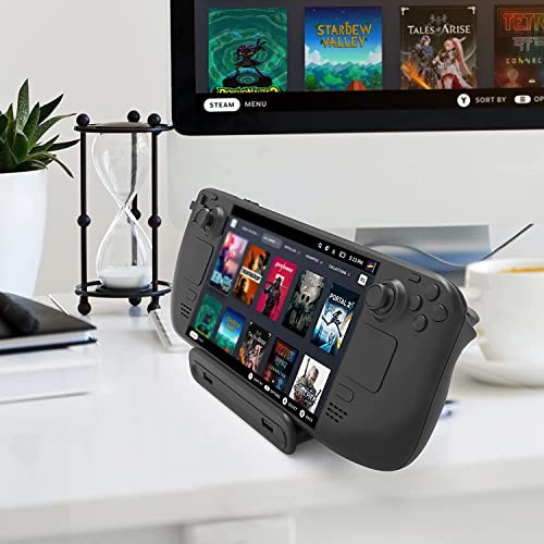 Steam Deck Dock 6 in 1: la docking station multifunzionale è appositamente progettata per Steam Deck.Dotata di uscita HDMI 4K a 60Hz*1, ingresso Gigabit Ethernet*1, porte USB-A 3.0*3 e porta USB C*1 per la ricarica, es combina anche la funzione di mozzo e supporto con un cuscinetto antiscivolo, supporta una copertura protettiva inferiore a 2 mm. Ti offre un nuovo modo di giocare con Steam Deck.