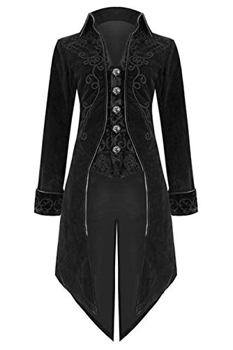 Steampunk Tailcoat Uomo Medievale Jacquard Giacca Frock Cappotto Halloween Gotico Vintage Tuxedo Nero, S