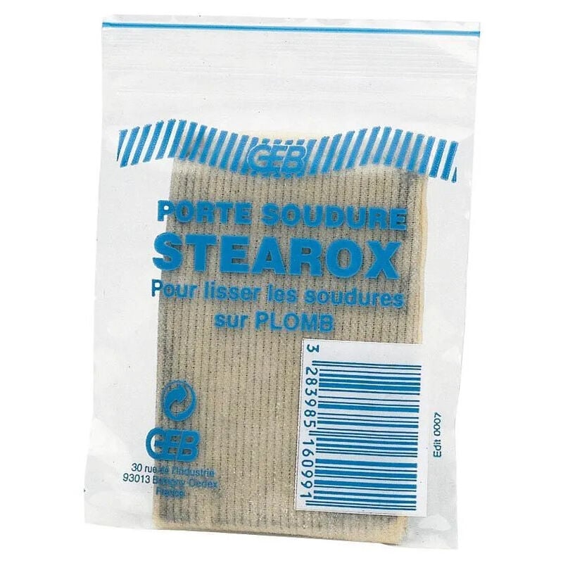 STEAROX: supporto sotto la guarnizione GEB - 516099 Caratteristiche: Lisciatura di giunti di saldatura di tipo stagno-piombo: La sua speciale impregnazione permette di lisciare la saldatura di tipo stagno-piombo prima della solidificazione, senza bruciare Istruzioni per l'uso: Lisciatura della saldatura prima della solidificazione Vantaggi del prodotto: Dà un aspetto leggermente graffiato alla saldatura, poi chiamato inglese Suggerimento: L'impregnazione con sego protegge dal calore. Stoccaggio: Conservare a una temperatura compresa tra -5°C e +50°C. A 20°C, la durata di conservazione del prodotto nella sua confezione originale chiusa è di 10 anni.