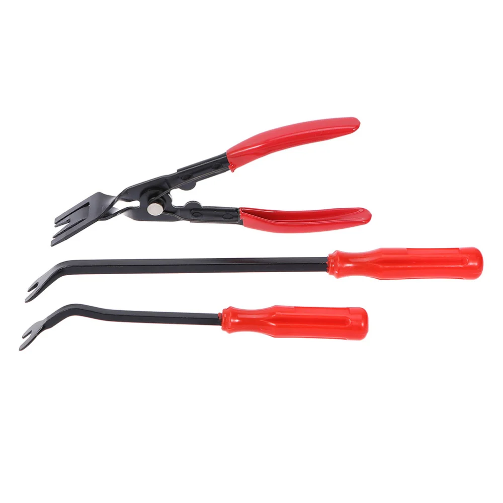 3Pcs Steel Car Door Panel Clips Pliers Repair Tool Kit Disassembly Tool Set (light Pliers + 6 Inches Screw Opener + 8 Inches Scr