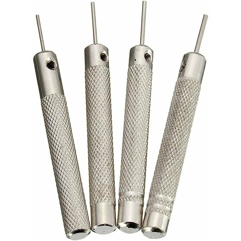 Leggero e resistente. Può sostituire la testa del perno con un cacciavite. Pratico per rimuovere i perni del cinturino. Impugnatura zigrinata con borchie antiscivolo. Un set ideale di punzoni per spilli, progettato solo per rimuovere spilli e ottimo per rivettare orologi e gioielli. Rimuovi e regola i braccialetti in modo rapido e semplice. facilmente. . Facile da usare e un must nel tuo kit di strumenti per la riparazione dell'orologio.