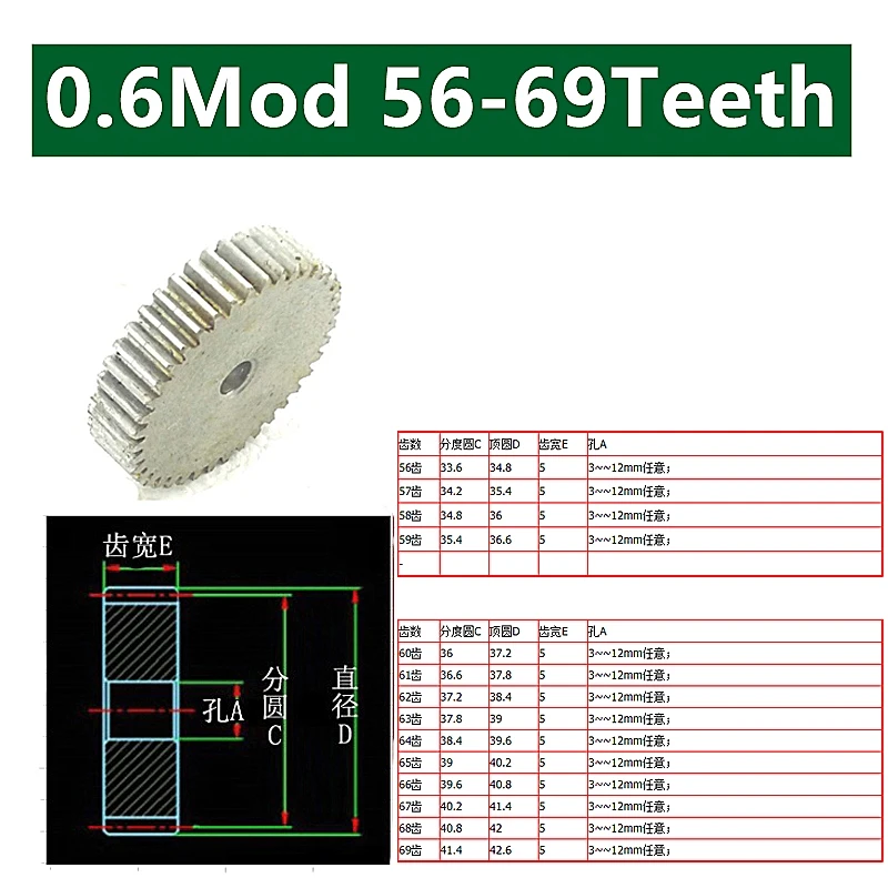 Flat 45# steel 0.6 die 56 57 58 59 60 61 62 63 64 65 66 67 68 69 spur gear 0.6mod 45 steel gear
