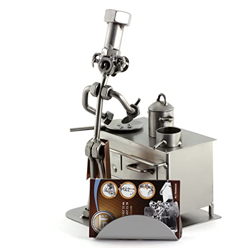 Steelman24 I Omini di Viti Cuoco con Portabiglietti da Visita con Piastra di Incisione Personale I Idee Regalo Originale I Soprammobili in Metallo
