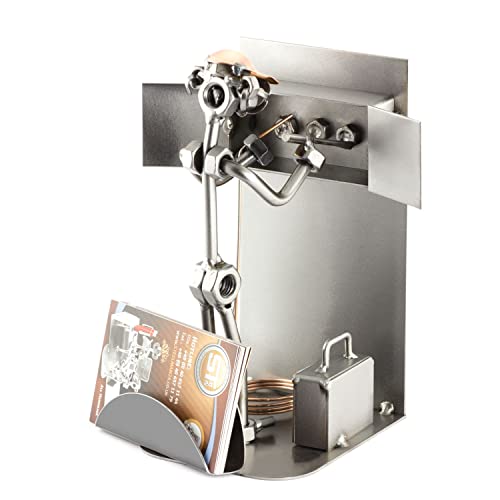 Steelman24 I Omini di Viti Elettricista con Portabiglietti da Visita con Piastra di Incisione Personale I Idee Regalo I Soprammobili in Metallo