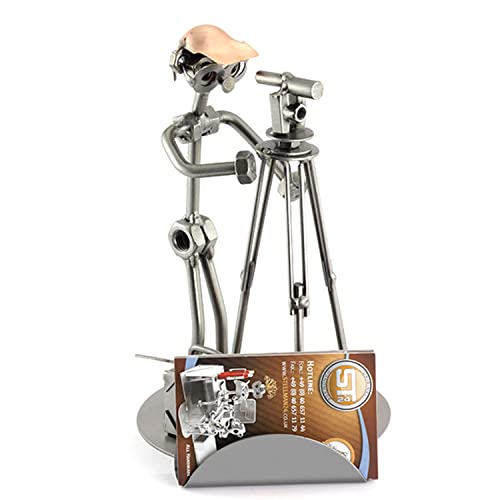 Steelman24 I Omini di Viti Geometra con Portabiglietti da Visita I Idee Regalo Originale I Soprammobili in Metallo I Modellino