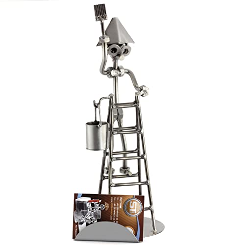 Steelman24 I Omini di Viti Imbianchino con Portabiglietti da Visita I Idee Regalo Originale I Soprammobili in Metallo I Modellino