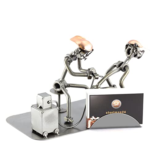 Steelman24 I Omini di Viti Tatuatore con Portabiglietti da Visita con Piastra di Incisione Personale I Idee Regalo I Soprammobili in Metallo