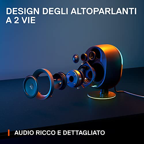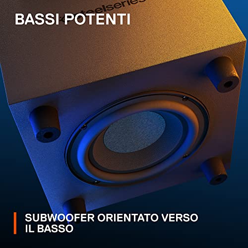 SteelSeries Arena 7 - Altoparlanti da gaming 2.1 illuminati - Design a 2 vie - Bassi potenti, subwoofer - Illuminazione RGB reattiva - USB, Aux, Ottico, Cablato - Bluetooth