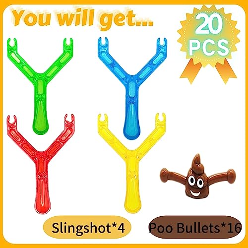 Steemjoey 20pcs Cacca Giocattolo, 4 Fionda Cacca tiro con la Fionda Scherzo 16 Mini Fionda di Gomma Giocattoli Cacca Volanti, Riempitori del sacchetto del partito per i bambini adulti (Colore Casuale)