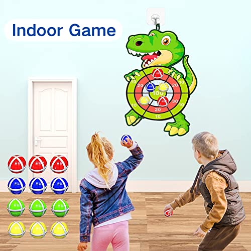 Steemjoey Dinosauri Freccette per Bambini, 73cm Bambini Velcro Dart Board con 12-Sticky Balls, Indoor ed Outdoor Hanging Dart Lanciare Set di Gioco per Bambini ed Adulto