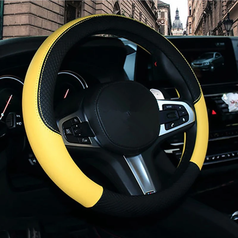 38cm Car Steering Wheel Cover, Universal Leather Steering Wheel Cover, Fit for All 99% Car Models Accessories