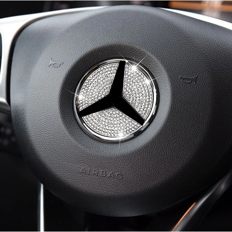 Car Steering Wheel Emblem 3D Rhinestone Logo Sticker With Diamond Decoration For Mercede Benz A/B/C/E/GLA/CLA/GLC/GLK/GLE series