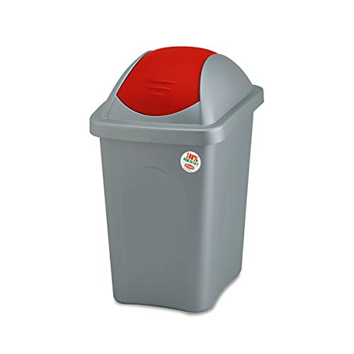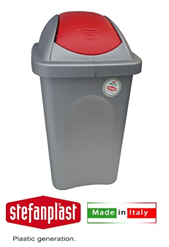 Stefanplast Multipat Basculina - Pattumiera portarifiuti, con coperchio basculante, 30 L, Rosso/Argento, 29 x 39 x 50 cm