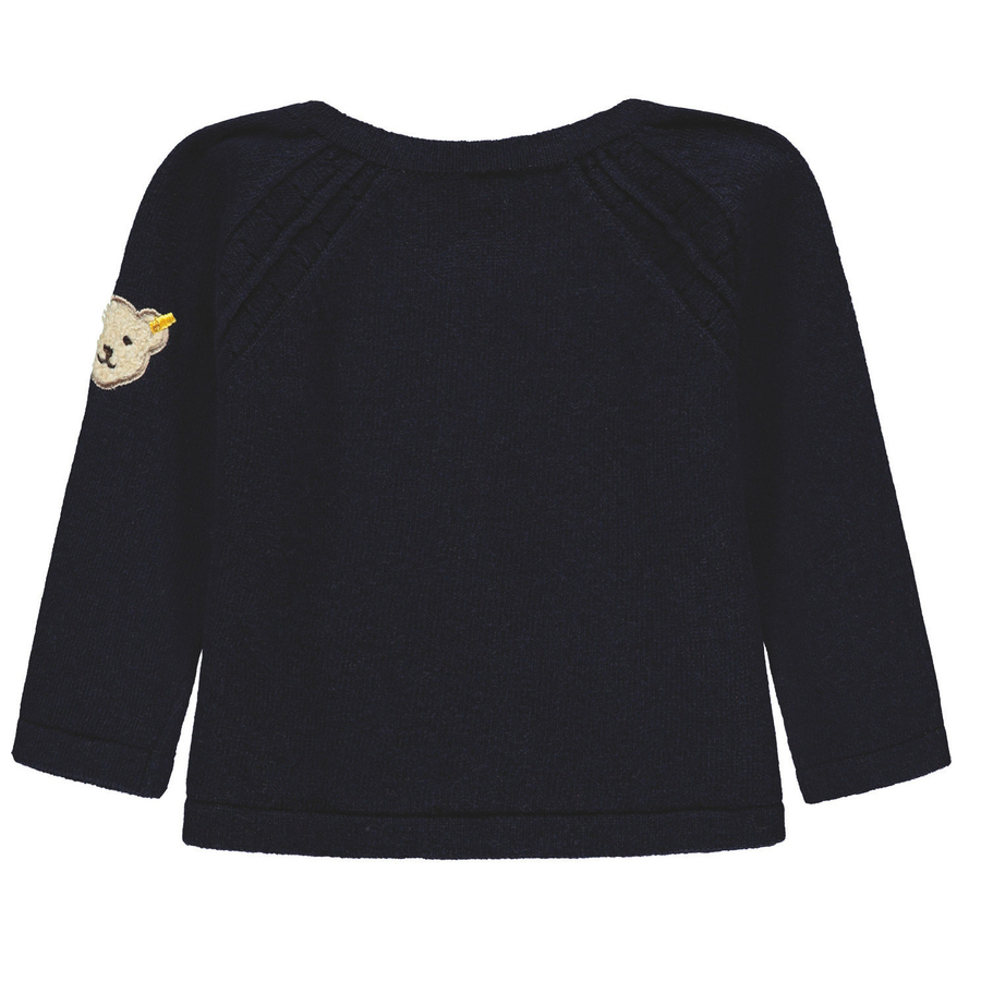 Esclusiva moda per bambini di Steiff ! Solo il meglio è abbastanza buono per i bambini - la Steiff filosofia si riflette anche nella moda per bambini. La sofisticata collezione di outfit dal design classico e dai colori accattivanti. Con questo comodo cardigan le piccole e grandi prestazioni diventano un piacere. Un meraviglioso calore e una sensazione di particolare morbidezza sono garantiti da una miscela di lana con contenuto di cashmere. La vestibilità classica supporta tutte le attività con libertà di movimento. I bottoni in madreperla e le tasche applicate sono ottimi dettagli. Steiff L'orsacchiotto sorride allegramente dalla manica sinistra. Caratteristiche del prodotto: Materiale: 45% viscosa, 25% poliammide, 25% lana, 5% cashmere lavabile fino a 30 °C .