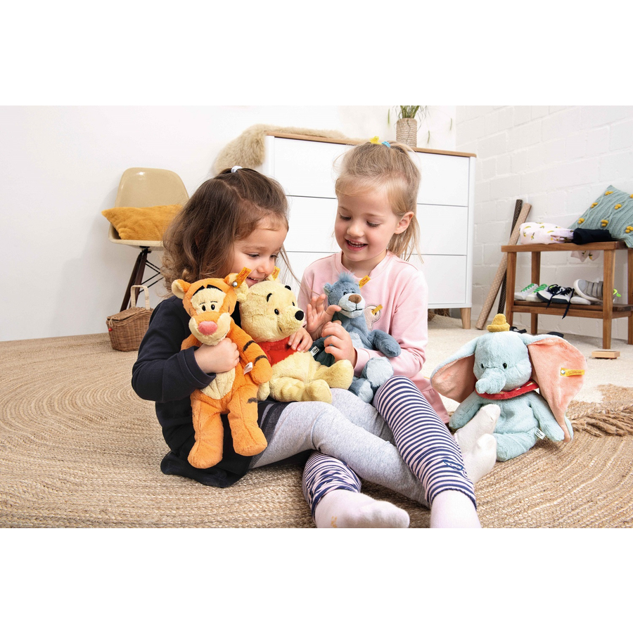 Il Soft Cuddly Friends Disney Balu, alto 31 cm, è particolarmente adorabile, realizzato in morbido peluche sintetico. Grazie agli occhi gü tiger, un muso sorprendente con un sorriso gentile e piccole orecchie da orso bicolore. Il colore acceso sulla sua pancia e sulle sue zampe è uno dei segni inconfondibili di riconoscimento. E il suo taglio di capelli blu lo rende un vero individualista. Un ulteriore divertimento di gioco è fornito dai sacchetti di granulato nelle braccia, gambe e natiche... Buon divertimento con Baloo! Dettagli del prodotto: t Dimensioni (altezza): 31 cm Colore: blu-grigio materiale: 100% poliestere Riempimento: sintetico Con occhi di plastica Con bottone nell'orecchio in acciaio inossidabile ©Disney Istruzioni per la cura 30°C lavaggio delicato Non candeggiare Non asciugare in asciugatrice Non stirare Non lavare a secco
