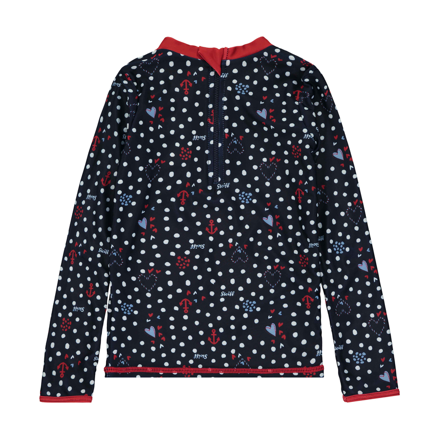 Moda esclusiva per bambini da Steiff ! Solo il meglio è abbastanza buono per i bambini - questa Steiff filosofia si riflette anche nella moda per bambini. La sofisticata collezione di outfit Design dai colori classici e lusinghieri. Con questa maglietta UV potrete godervi il sole un po' più spensieratamente. Comodamente tagliato e dotato di un piccolo collare stand-up, il top a maniche lunghe offre una protezione UV 50+. Il materiale flessibile si asciuga rapidamente, in modo che la piccola b aden ixen possa godere allegramente delle onde e raccogliere conchiglie. Una cerniera lampo anti-pizzico sulla schiena aiuta a vestirsi. Puntini, motivi di ancoraggio e cuori su blu navy assicurano visibilità e divertimento. Un Steiff orsacchiotto con l'ancora accompagna il vostro piccolo sulla spiaggia e in acqua. Il miglior umore estivo ! dettagli del prodotto: materiale: 85 % poliestere, 15 % elastan Lavabile fino a 30 °C