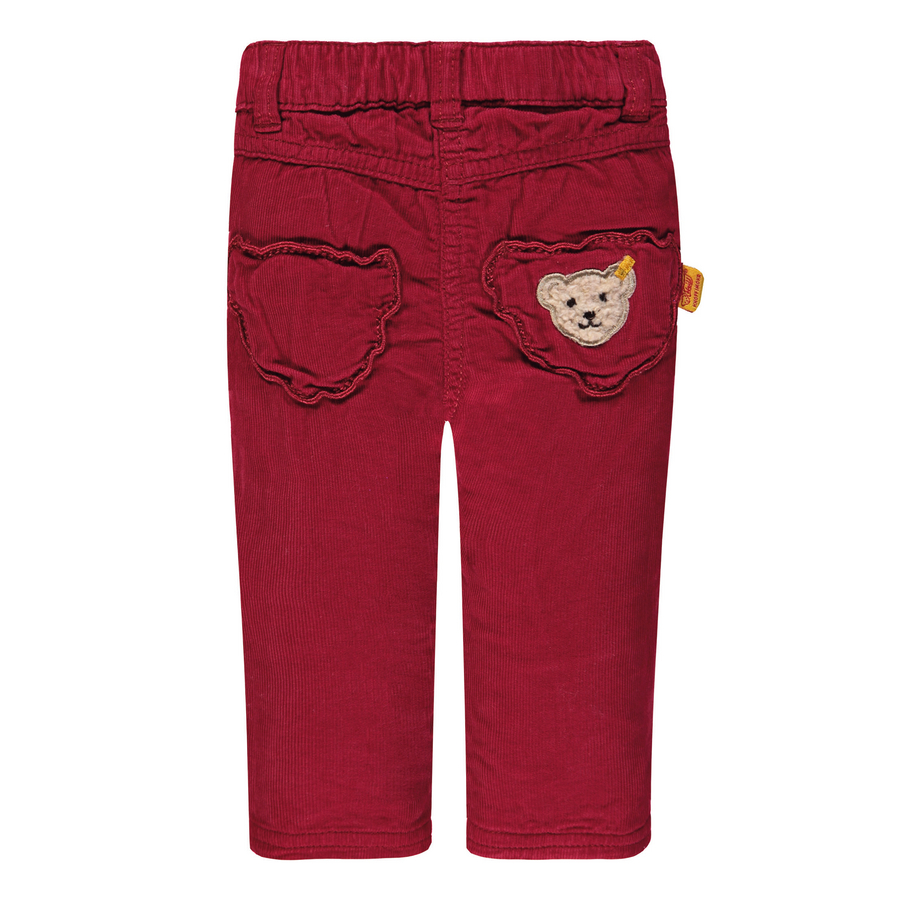 Esclusiva moda per bambini di Steiff ! Solo il meglio è abbastanza buono per i bambini - la Steiff filosofia si riflette anche nella moda per bambini . La sofisticata collezione di outfit dal design classico e dai colori accattivanti. I pantaloni a coste sono semplicemente indispensabili nei mesi più freddi dell'anno. Questo è comodamente morbido e dotato di una fodera interna riscaldante. Lavorando come pantaloni semplici con cintura interna regolabile in vita, anche i viaggi più lunghi sono molto divertenti. In ogni caso, il vostro piccolo sarà accompagnato da un Steiff soffice motivo di orsacchiotto sulla tasca posteriore per ogni occasione. Dettagli del prodotto: Materiale: 100% cotone 100% Fodera: 95% cotone, 5% elastan Lavabile fino a 40°C Adatto per asciugatrici Testato secondo l' Oeko-Tex Standard 100