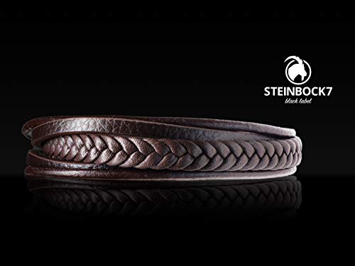 Steinbock7, bracciale da uomo in pelle con chiusura magnetica e Acciaio inossidabile, colore: marrone, cod. STEINBOCK7-9062-BROWN