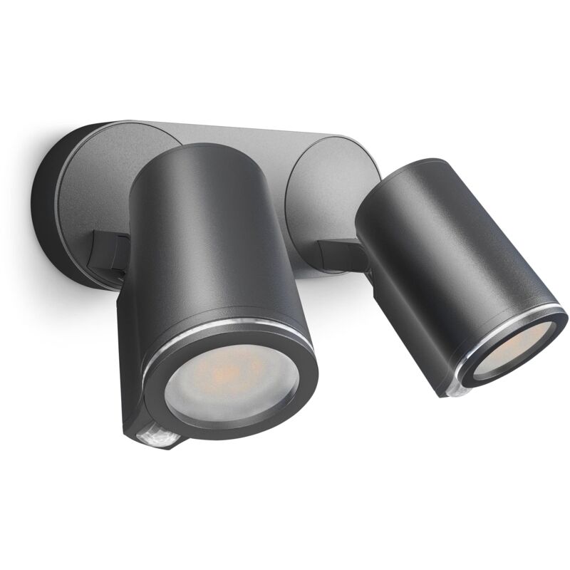 La serie di fari per montaggio a muro Spot DUO ha un effetto doppiamente positivo. Da un lato grazie al suo design essenziale, dall'altro lato grazie alla potenza di luminosità con un flusso luminoso utile di 2x 620 lm e un consumo di soli 2x 6,7 W. I singoli fari LED sono regolabili di 180° in orizzontale e di 90° in verticale. Per un'illuminazione mirata e puntuale di diverse aree attorno alla casa. Le due varianti disponibili - Spot DUO Sensor e Spot DUO Sensor Connect - sono dotate entrambe di intelligenti sensori a infrarossi 90° che generano l'accensione della luce su un raggio d'azione fino a 10 m. Sulle due varianti si possono impostare sia la durata del periodo di accensione sia la soglia di luce crepuscolare. La versione Connect con Bluetooth integrato può essere collegata via wireless e impostata e gestita tramite app. Anche la creazione di gruppi e l'assegnazione di nomi identificativi alle lampade avviene comodamente tramite app. Le lampadine sostituibili sono comprese
