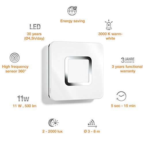 Steinel LED illuminazione interni RS LED M1 in acciaio inox, da parete e soffitto con unsichbarem 360 ° Rilevatore di movimento, Cromo, Chrom, Integriert, 11 wattsW, 230 voltsV
