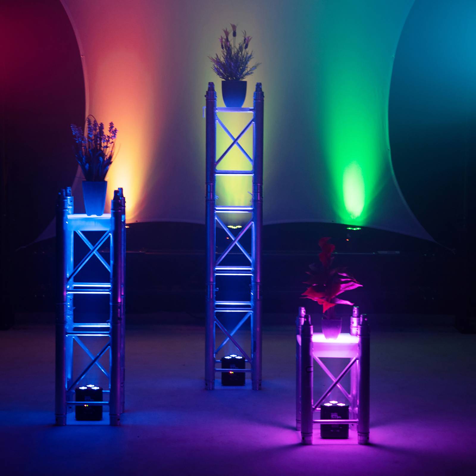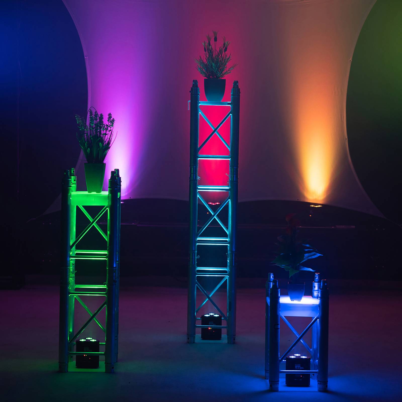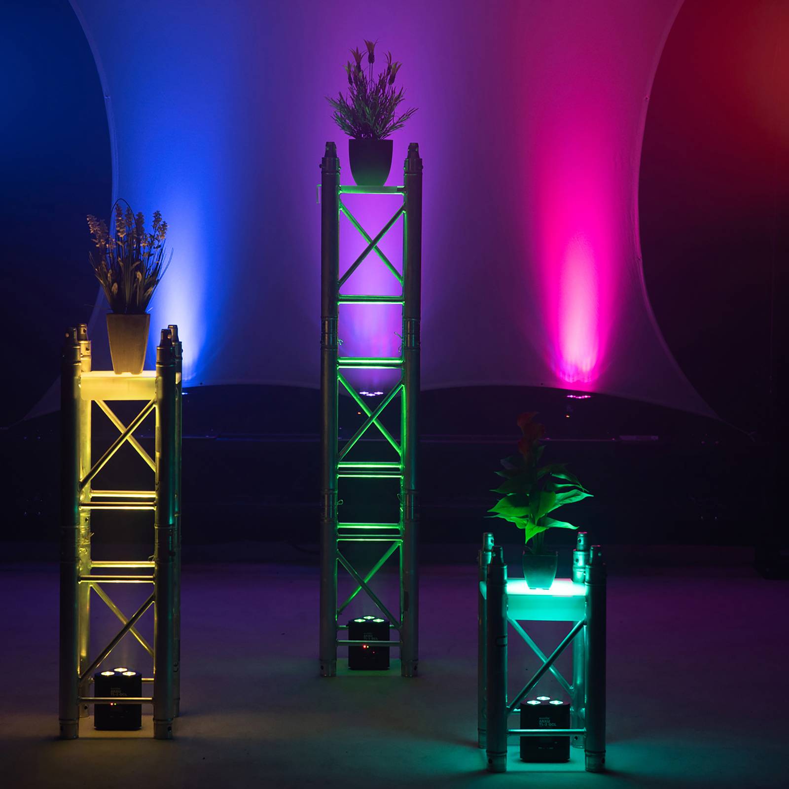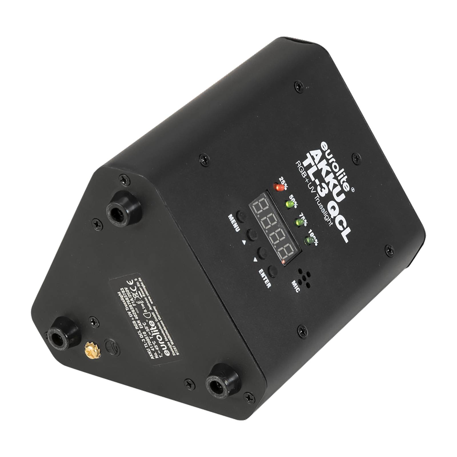 EUROLITE batteria ricaricabile TL-3 QCL Trusslight Faretto LED RGB + UV Il faretto LED a batteria ricaricabile TL-3 QCL Trusslight è dotato di 3 LED RGB e UV da 4 W. È ideale per la costruzione di stand, sui palchi e ovunque si utilizzino trussing. Il faretto a batteria ha un'autonomia fino a 8 ore, si ricarica in 2,5 ore e viene fornito con un cavo di ricarica e un telecomando a infrarossi - 3 potenti LED 4W RGB + UV - senza fili e versatile - ideale per i trussing, ad esempio per il truss in alluminio dec. Ad esempio per il sistema a 3 punti Alutruss Decolock DQ3 - modalità automatica, musicale, master/slave e DMX - compatibile con QuickDMX - programmi di spettacolo integrati in modalità automatica e musicale - selezione diretta del colore per 20 colori - temperatura di luce variabile da 2.700 a 3.000 K - step di accensione e spegnimento - possibilità di utilizzare il telecomando a infrarossi.700 a 8.000 K - miscelazione dei colori in continuo, gioco di colori, dissolvenza, effetto dimmer e strobo - con filettatura per l'installazione su tralicci e piedini in gomma per il montaggio - ingresso e uscita di rete per una facile interconnessione fino a 8 dispositivi - può funzionare in modalità DMX a 2;