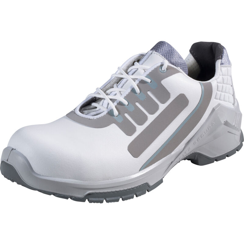 Scarpa di sicurezza VARIO DYNAMICS PRO con ammortizzazione nella zona del tallone SECURA VARIO® e tecnologia VARIO Multiflex per una maggiore leggerezza. * Tomaia in leggerissima microfibra. * Linguetta. * Struttura della scarpa senza cuciture. * Fodera funzionale traspirante. * Suola esterna TPU Athletic ESD, grigio argento. * Sottopiede in vero cuoio. * Comodo plantare ERGO-SOFT ESD. * Protezione dalle scariche elettrostatiche (ESD). Norma: EN ISO 20345:2011 S2 SRC Einlagenversorgung baumustergeprüft nach DGUV Regel 191. Nota: Esecuzione larga XB al n. art. 092677. Comprende l'elemento smorzatore (rosso e nero) Dati tecnici Proprietà elettrostatiche EGB/ESD Tipo di prodotto Calzatura bassa di sicurezza Genere da uomo Norma Fornitura di inserti omologati a norma DGUV 191 Grado di protezione S2 Numero di scarpa UE 46 Materiale puntale protettivo Alluminio Caratteristica Ammortizzazione Vario