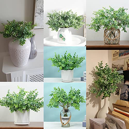 Il mazzo di eucalipto finto è alto circa 37 cm, 3 mazzi - totale di 12 pezzi, rami e foglie lussureggianti, bello, classico ed elegante, crea un aspetto luminoso e confortevole per la tua stanza. L'eucalipto artificiale realistico sembra una pianta vera. Robusti, steli lunghi hanno foglie arrotondate, la foglia superiore dello stelo mantiene la forma di foglia giovanile.