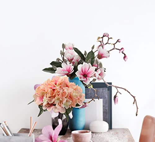 Dimensioni del ramo di magnolia: ogni gambo di magnolia è alto 45 cm, con 2 fioriture circondate da 6 gemme. Questi fiori di seta resistenti porteranno la vista del mondo naturale a casa tua e senza problemi.