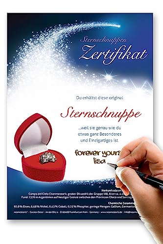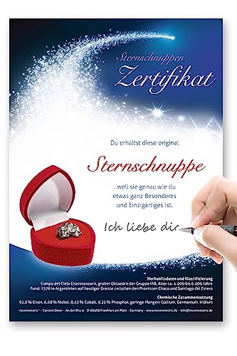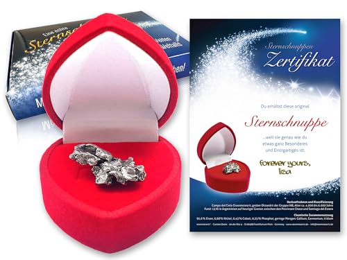 Vera stella cadente in scatola a forma di cuore, con certificato di dedica personalizzabile, in splendida confezione regalo, portafortuna, meteorite come regalo per San Valentino, compleanno,