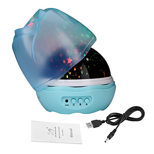 Fdit USB Stella Luna Cielo Proiettore Upgrade Lampada di Illuminazione Notturna Musicale Cielo Stellato Luce del Proiettore Baby Sleep a LED Proiettore Stelle Luna Luci Bimbi Notturne(Blu)