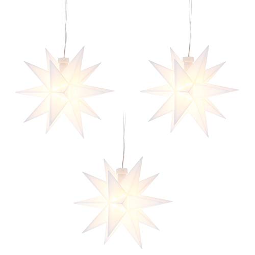 Stella a LED, funzionamento a batteria, Ø 12 cm, funzione timer: 6 ore, 18 ore, lunghezza cavo: 1,5 m, con 18 raggi e 2 luci LED in luce bianca calda, decorazione per finestra di Natale moderno Weiß | 3 Stück