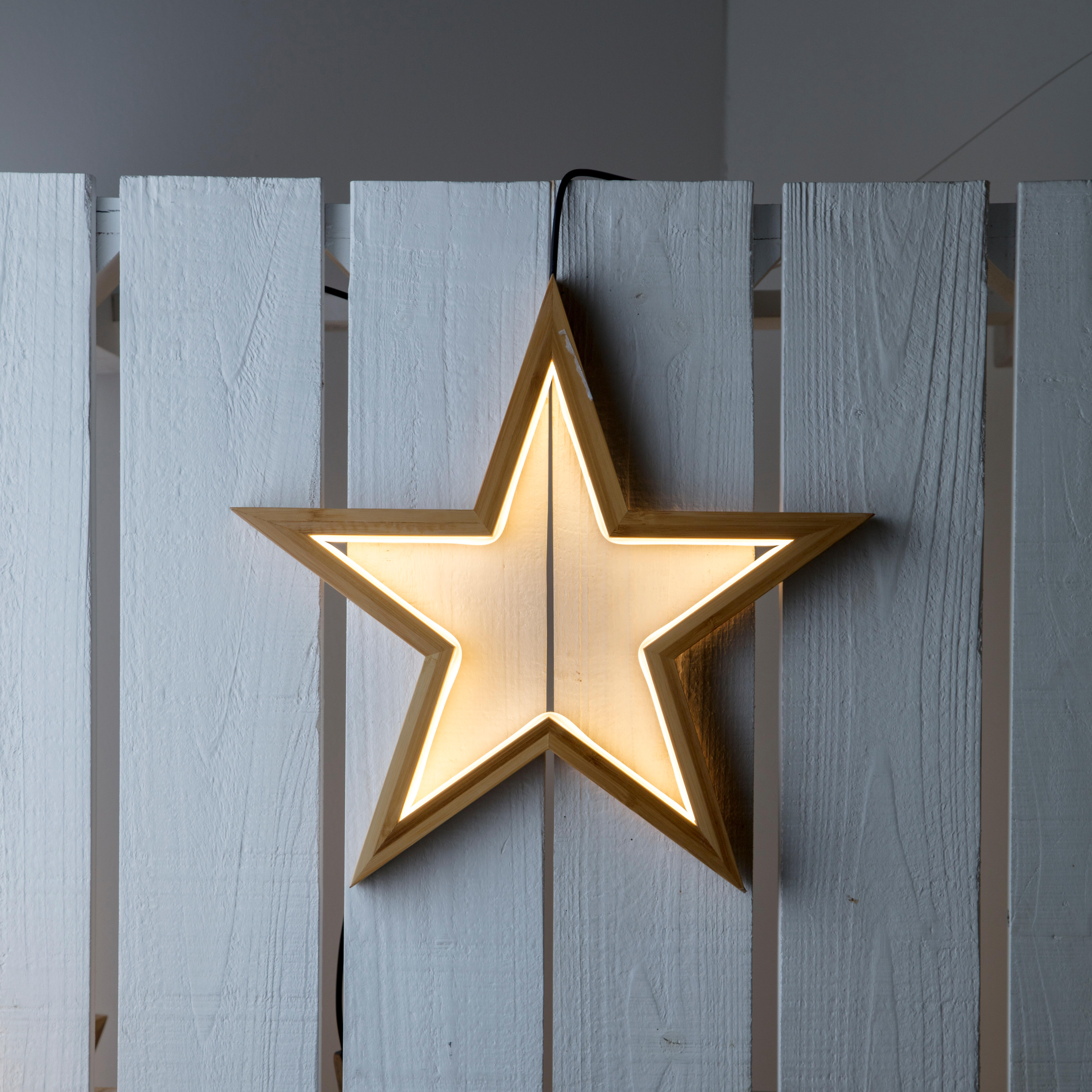 In legno con cavo di color nero e luci LED dal colore bianco caldo. Adatto per interno.. Ideale per decorare ambienti esterni e porticati