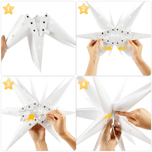 【Decorazioni natalizie】Che si tratti di una riunione, di una festa o di una decorazione per l'albero di Natale, questa stella pieghevole è una decorazione ideale. La luce gialla calda e brillante creerà un'atmosfera rilassata, calda e romantica per te, aggiungendo un tocco di eleganza alla tua decorazione, rendendo la tua decorazione più affascinante.