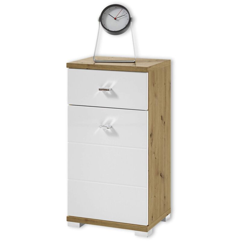 La cassettiera colpisce per il suo look accattivante. La versatile cassettiera offre una maggiore flessibilità nel bagno. Nonostante l'uso quotidiano, il mobile è estremamente resistente grazie alla lavorazione di alta qualità. Dietro la porta, c'è abbastanza spazio per gli asciugamani e gli utensili da bagno. Un ripiano intermedio assicura un ulteriore ordine e un uso ottimale dello spazio di stoccaggio. Il cassetto permette un accesso rapido agli oggetti usati frequentemente in bagno. Le decorazioni o gli utensili da bagno possono essere collocati sul ripiano.consegna: 1x cassettiera.