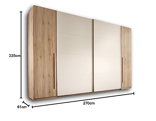Stella Trading FAST, Armadio guardaroba elegante, molto capiente, versatile con ante scorrevoli in simil rovere San Remo, bianco, 270 x 226 x 60 cm (L x A x P)