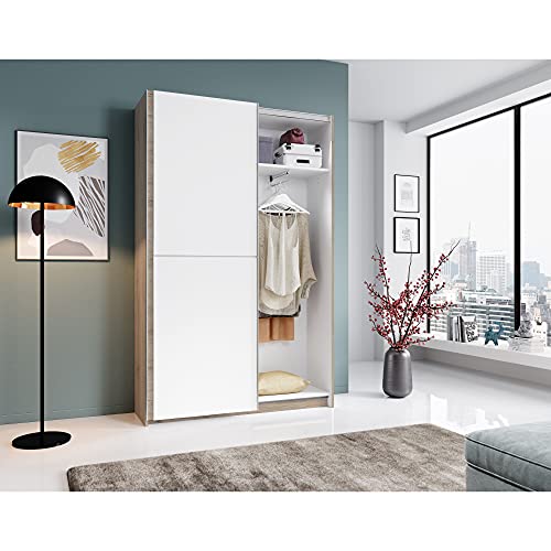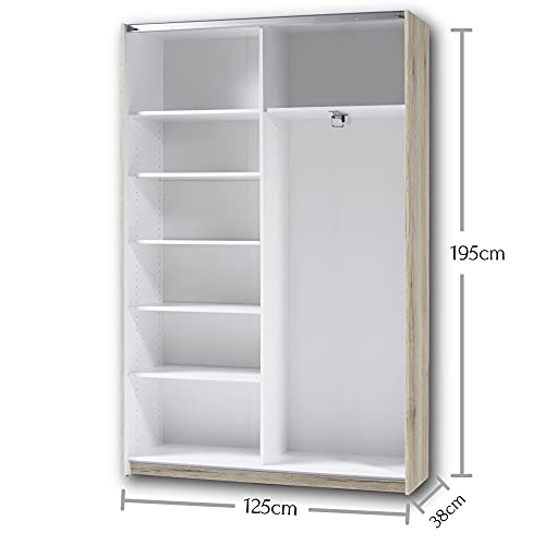 Stella Trading FAST, Armadio guardaroba elegante, molto capiente, versatile con ante scorrevoli, finitura San Remo, 125 x 195 x 38 cm, L x A x P