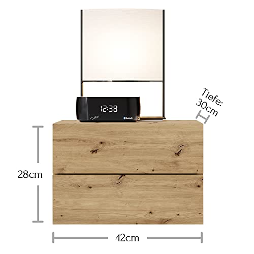 Stella Trading Cabo-Comodino sospeso con cassetti e Molto Spazio, Legno ingegnerizzato, Quercia Artisan, 42 x 28 x 30 cm