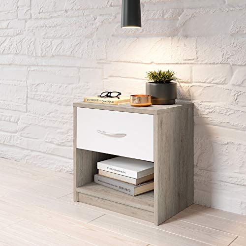 Stella Trading, Comodino PEPE in San Remo, bianco, Semplice comodino con un cassetto adatto ad ogni letto e camera da letto, 39 x 41 x 28 cm