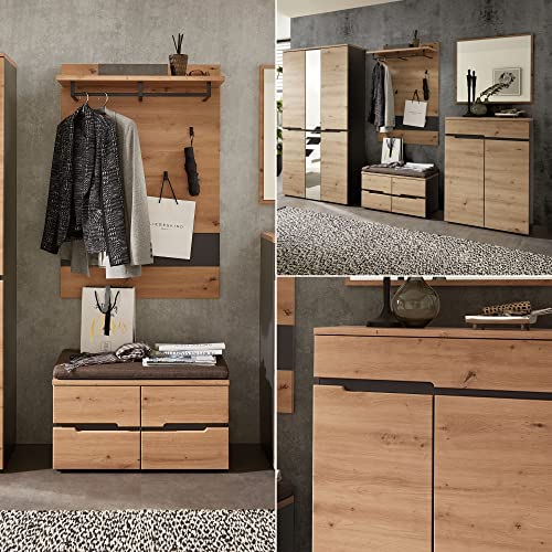 Comodo: grazie alla combinazione di colori con effetto rovere Artisan e grafite, il set appendiabiti garantisce un'atmosfera accogliente e dona un tocco speciale al vostro ingresso.